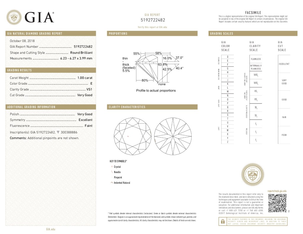GIA: E colour, VS1 clarity, 1.00ct 2VEx Faint
