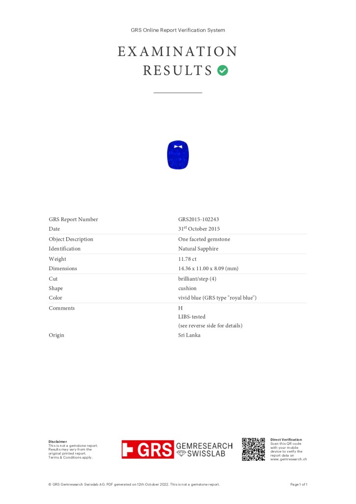 GRS 皇家藍VIVID BLUE 11.78CT